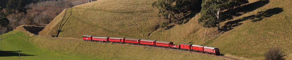 The line passes alongside the Sherwood, Bishops Head and Waipara River Estate Vineyards on it’s inital climb towards the hills, as well as a small olive grove. Behind the train, the Teviotdale Hills. These protect the Waipara Valley from the cool winds blowing from the sea. Waipara has the highest summer temperatures and the lowest rainfall of any New Zealand wine region.